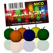 Vierfarbig sortiert im 6er-Beutel, Durchmesser ca. 2,5 cm. Farb-Rauchbälle erzeugen nach dem Anzünden an der Zündschnur einen dichten, farbigen Rauch.